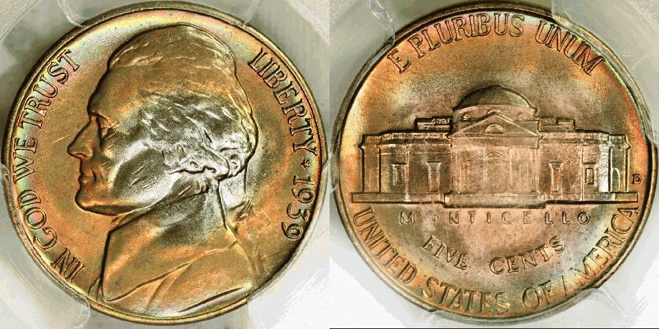 We also have several 1914/3 nickels, one P, one D, and two S. All have the appropriate diagnostics. We also acquired a wonderfully toned 1939-D Jefferson nickel in PCGS MS-65. We also have a group of Buffalo nickel varieties including two feather, No F, and 3 1/2 leg Buffaloes, and our prices are lower, and in some cases, much lower than competitors' prices for these varieties! We carry the best reference book on these varieties, Buffalo Nickels - The Abraded Die Varieties by Ron Pope. It is available in our Books section.